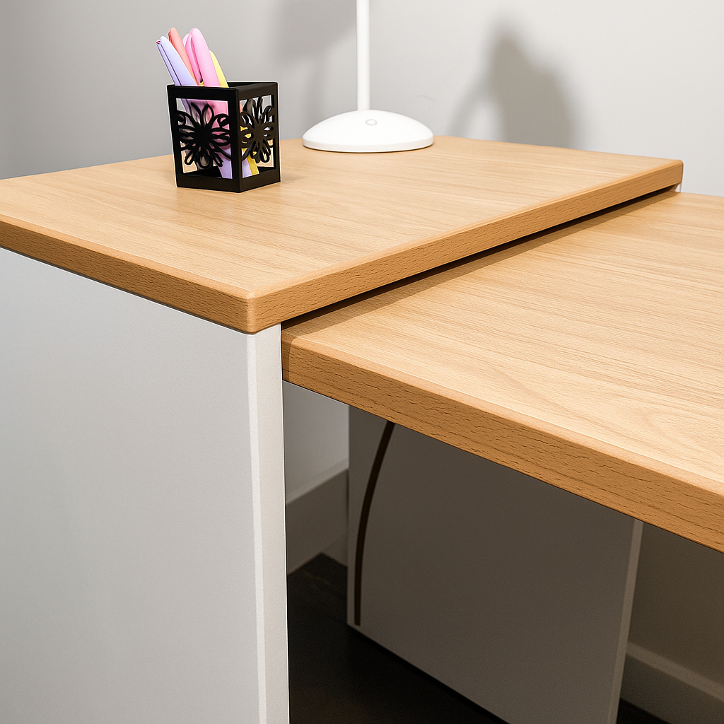 Viblok: Mesa Convertible para Espacios Reducidos La mesa Viblok es la solución perfecta para optimizar tu espacio sin comprometer funcionalidad ni estilo. Diseñada especialmente para departamentos y hogares con espacios limitados, su diseño convertible permite transformarla fácilmente de una compacta unidad de almacenamiento a una mesa de trabajo amplia y cómoda. Con un acabado moderno y elegante, Viblok es ideal para quienes buscan practicidad y estilo en un solo mueble. Aprovechá cada rincón de tu hogar con una pieza versátil, fácil de plegar y desplegar, que se adapta a tu vida. ¡Solucionamos tu espacio y simplificamos tu vida!