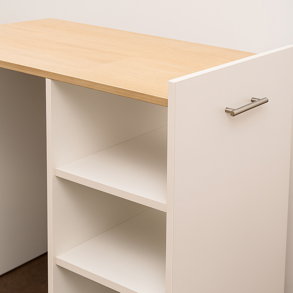 Viblok: Mesa Convertible para Espacios Reducidos La mesa Viblok es la solución perfecta para optimizar tu espacio sin comprometer funcionalidad ni estilo. Diseñada especialmente para departamentos y hogares con espacios limitados, su diseño convertible permite transformarla fácilmente de una compacta unidad de almacenamiento a una mesa de trabajo amplia y cómoda. Con un acabado moderno y elegante, Viblok es ideal para quienes buscan practicidad y estilo en un solo mueble. Aprovechá cada rincón de tu hogar con una pieza versátil, fácil de plegar y desplegar, que se adapta a tu vida. ¡Solucionamos tu espacio y simplificamos tu vida!
