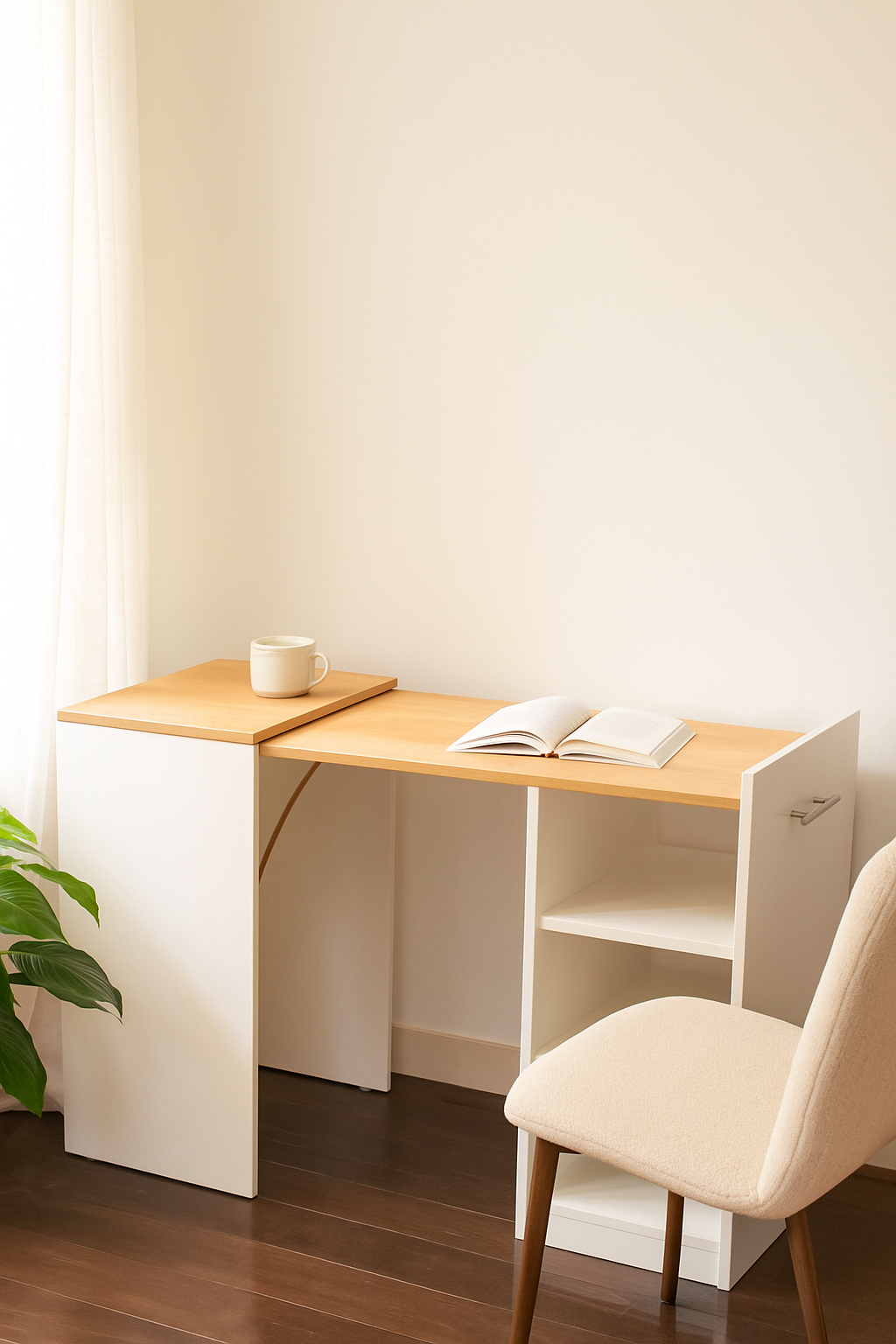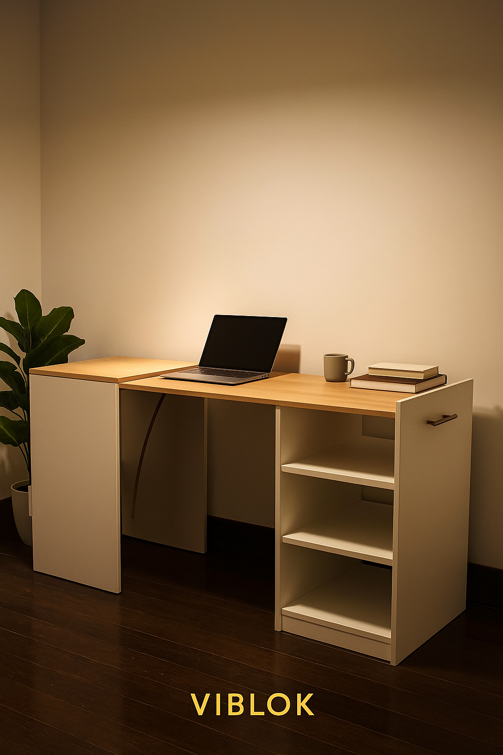 La mesa Viblok es la solución perfecta para optimizar tu espacio sin comprometer funcionalidad ni estilo. Diseñada especialmente para departamentos y hogares con espacios limitados, su diseño convertible permite transformarla fácilmente de una compacta unidad de almacenamiento a una mesa de trabajo amplia y cómoda. Con un acabado moderno y elegante, Viblok es ideal para quienes buscan practicidad y estilo en un solo mueble. Aprovechá cada rincón de tu hogar con una pieza versátil, fácil de plegar y desplegar, que se adapta a tu vida. ¡Solucionamos tu espacio y simplificamos tu vida!
